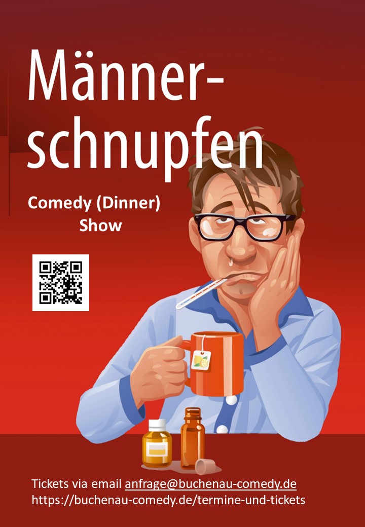 Erleben Sie im prachtvollen „Schlosshotel Rettershof“ einen unterhaltsamen Abend mit viel Lachen und gutem Essen. Bei unserem neuen Format, dem Comedy-Dinner, können Sie sich auf einen abwechslungsreichen Abend freuen. Genießen Sie das Comedy-Stück „Männer-Schnupfen“ („Ich bin erkältet… oder wie meine Frau frei nach Heinz Ehrhardt sagen würde: Es geht mit Dir zu Ende“), begleitet von einem perfekt abgestimmten Drei-Gänge-Menü. Die Küche verwöhnt Sie mit Schlossklassikern bis hin zu neu interpretierten internationalen Speisen. Die besondere Kombination aus Comedy, köstlichem Essen und beeindruckendem Ambiente wird Ihnen den Abend versüßen.